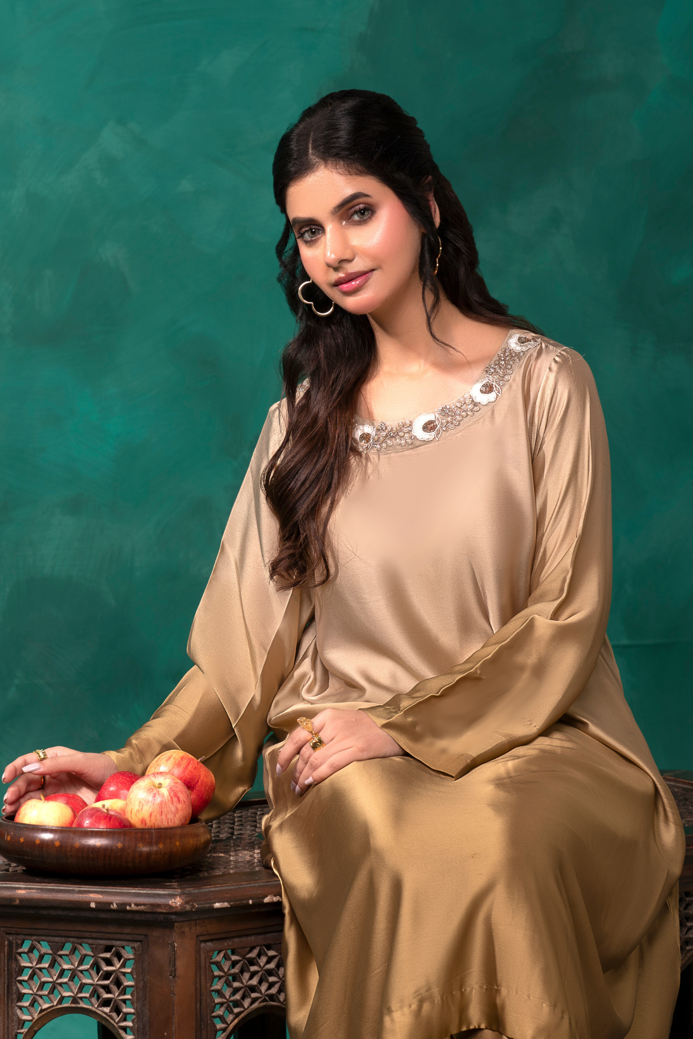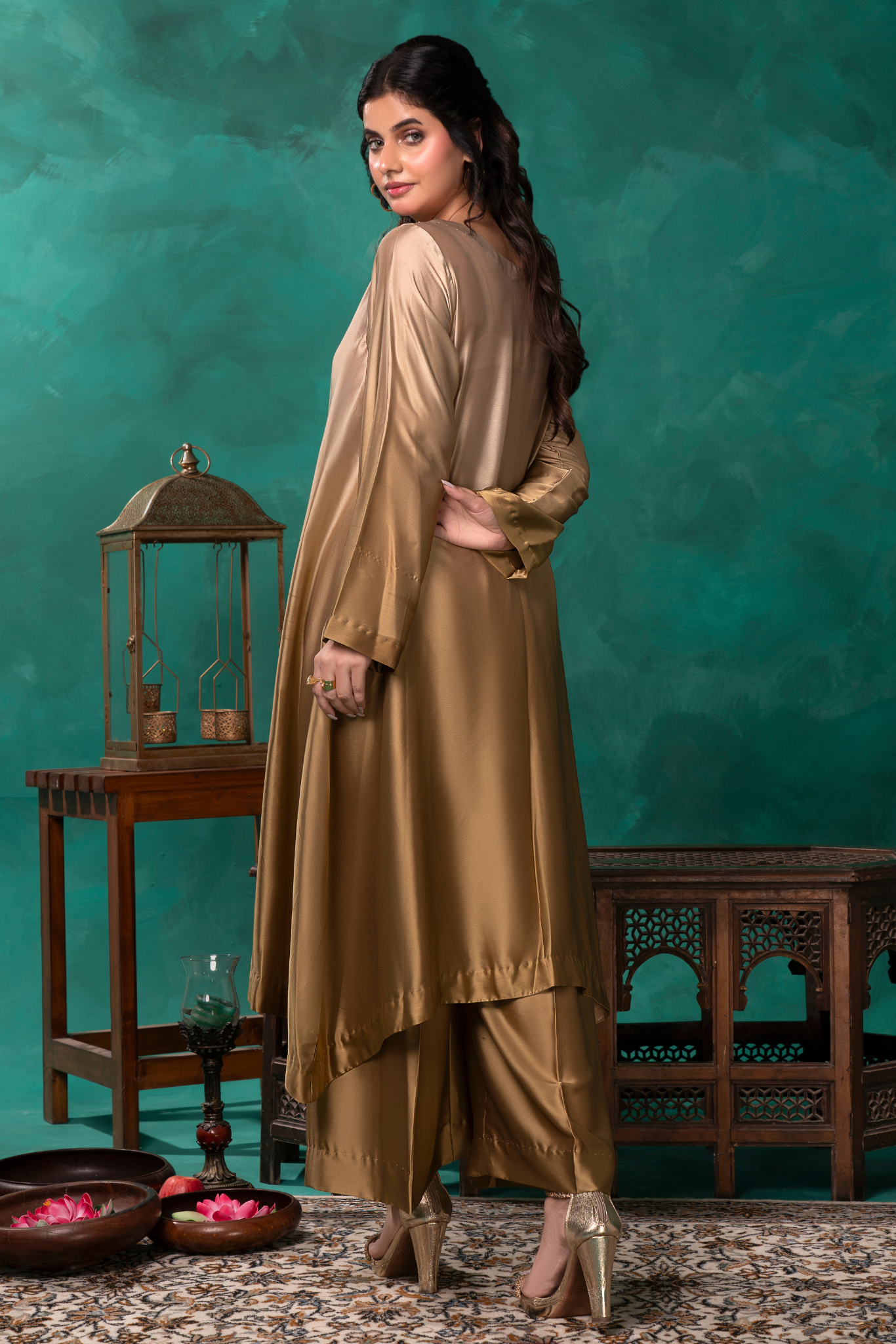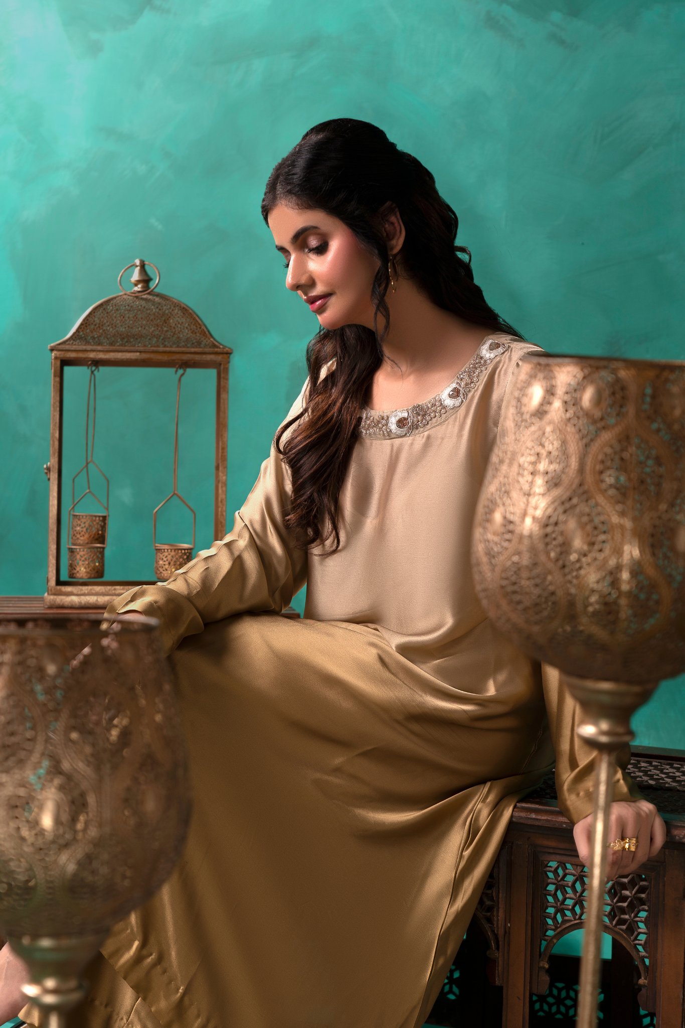 Indulge in luxury with our Sunlit Gold Coord Set. Crafted from a luscious gold ombre silk, this 2 piece set features an intricately embroidered and embellished neckline, elevating your elegance. The perfect silhouette for any occasion.