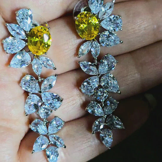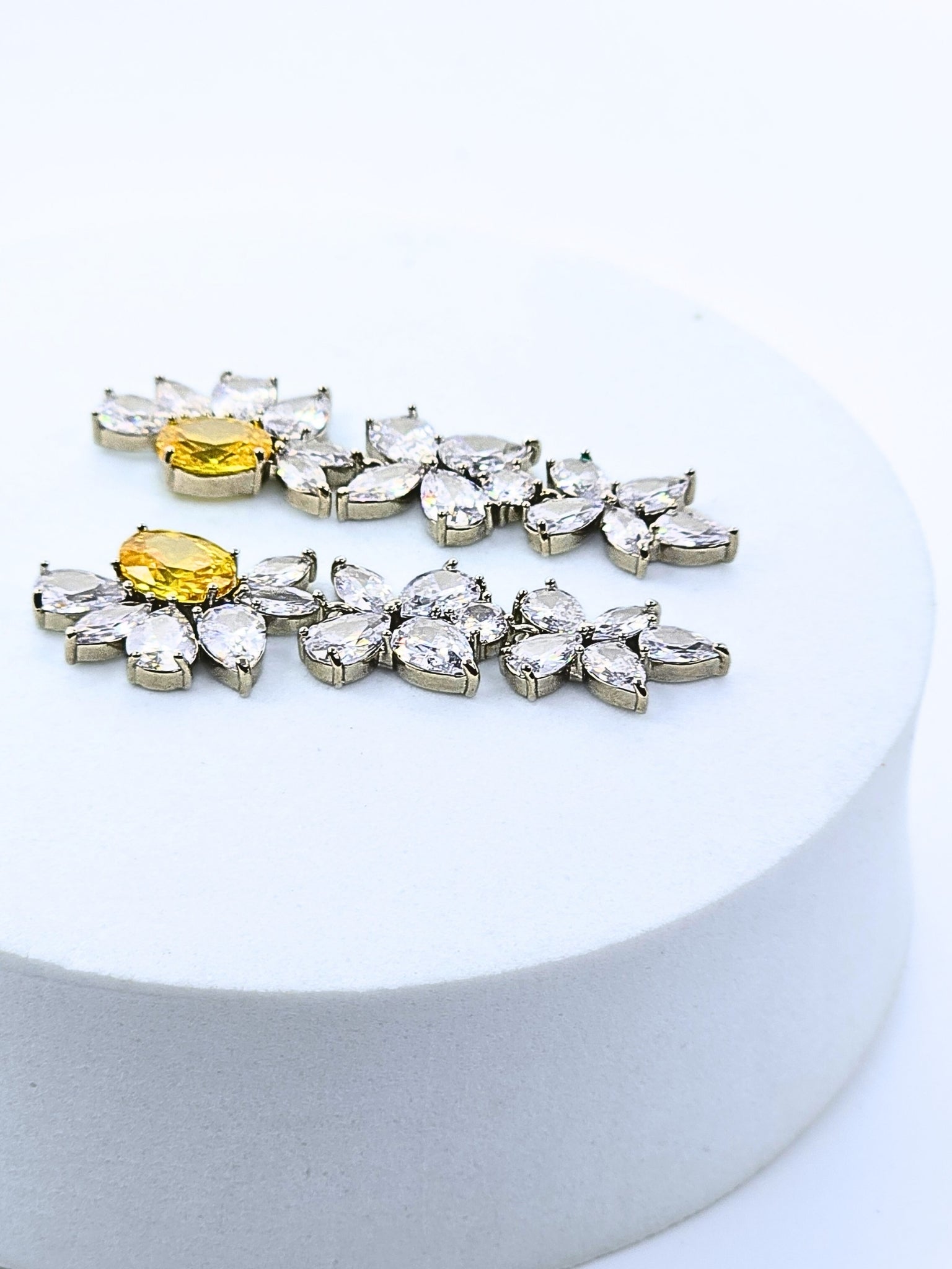 These stunning dangle earrings feature showcase a beautiful combination of honey and white colors. The intricate work technique adds a touch of elegance to their design, making them a must-have accessory for any occasion. Elevate your look with these gorgeous earrings from Ray Online Jewellery.