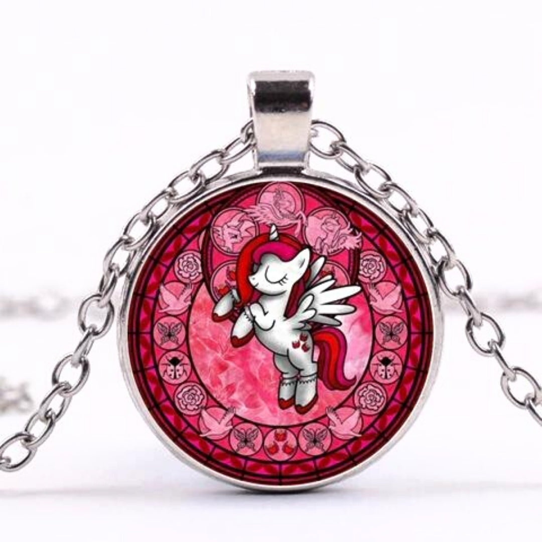 Unicorn Medallion Necklace: Red Heart Unicorn